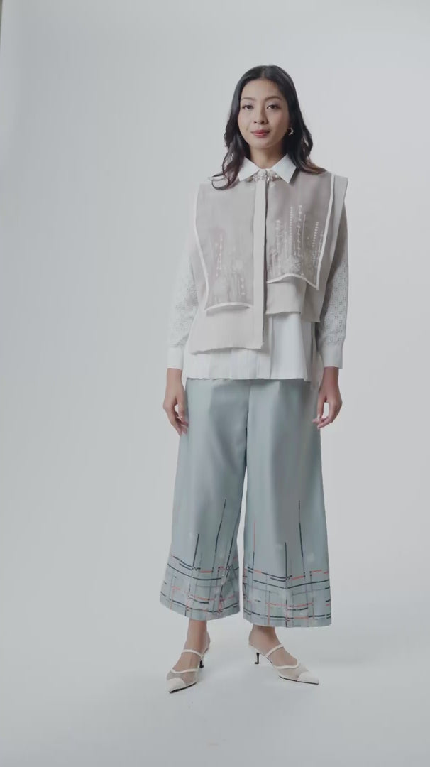 An asymmetrical vest with embroidery details, a vest that features a versatile, modern rope accent on the right and left sides that can be adjusted to your body size.