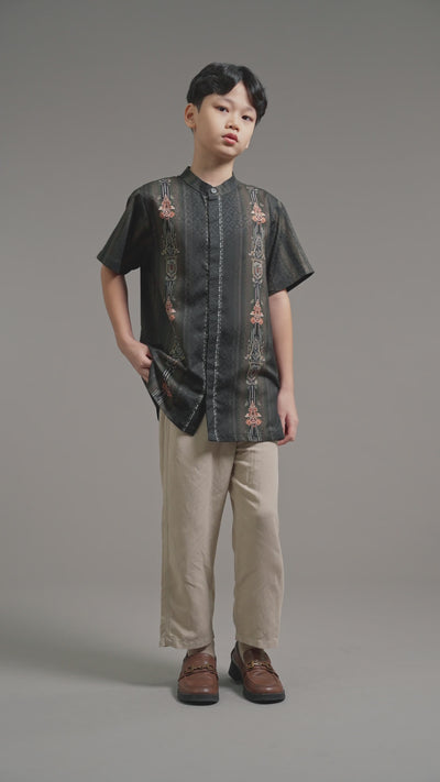 Elevate your little one's style with the timeless charm of a uniquely patterned short-sleeved shirt. This versatile dobby textured shirt with a mandarin collar is comfortable to wear.