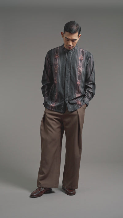 Elevate your style with the timeless charm of a uniquely patterned short-sleeved shirt. This versatile dobby textured shirt with a mandarin collar is comfortable to wear.