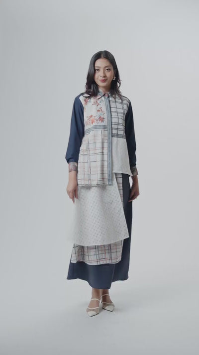 A long-sleeved top with a combination of fabric details on the body. The asymmetrical cut is longer at the front. This shirt makes breastfeeding easier thanks to the hidden buttons at the front. Pair this simple style with navy Haze Pants for a statement look!